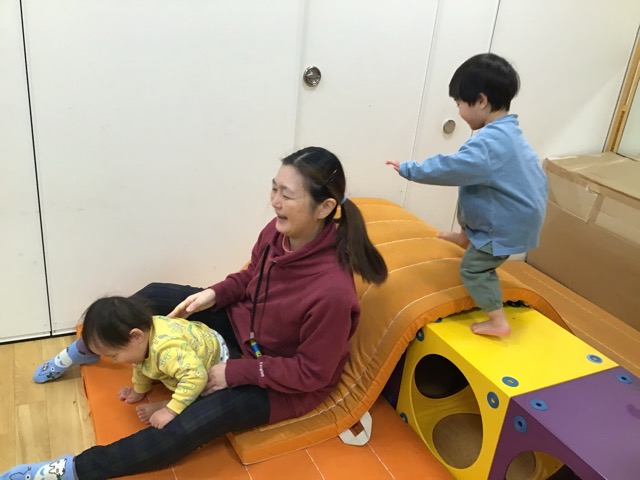 おばあちゃんと一緒に体を動かして遊んだり、絵本を読んでもらったりしました。