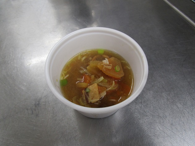 そして今月は、備蓄食の豚汁を給食に取り入れてみました。